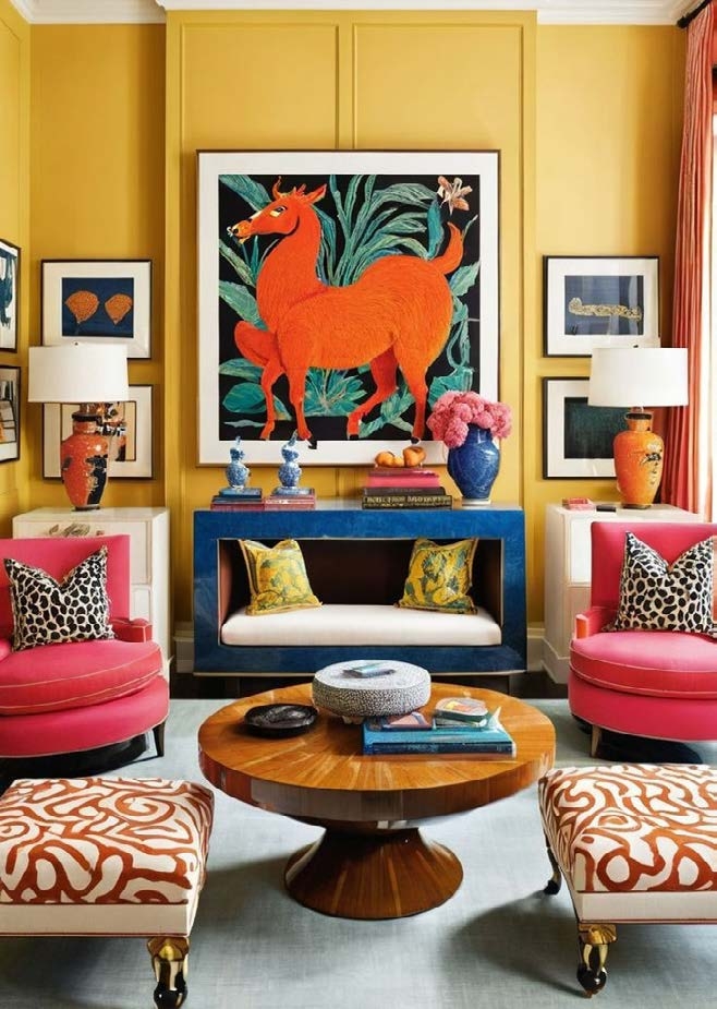 The use of colour is essential to maximalist design. Neutral tones are not the best option at this time. Opt for striking and vibrant hues such as emerald greens, burnt oranges, mustard yellows, deep blues, or even hot pink. A wall can be painted a vibrant colour, or you can add vibrant furniture and accessories, such as carpets, pillows, and curtains. Don’t stress too much about everything matching. Strict adherence to norms is not what maximalism is about. It all comes down to selecting hues that uplift you and give your room vitality. The goal is to make the space feel lively and energising.