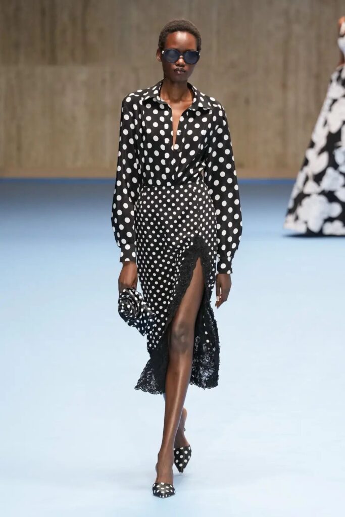 Polka dots are no longer just cute or retro. In 2026, they are bold and confident. Designers are moving away from tiny, neat dots and embracing bigger, irregular, and dramatic ones. You’ll see polka dots on flowing dresses, sheer tops, tailored suits, and even accessories like scarves and handbags. The colours are also more daring, for example, black on neon, white on red, or mixed prints. What makes this trend everywhere-worthy is how easy it is to wear. A polka dot piece instantly adds interest without looking like you tried too hard.